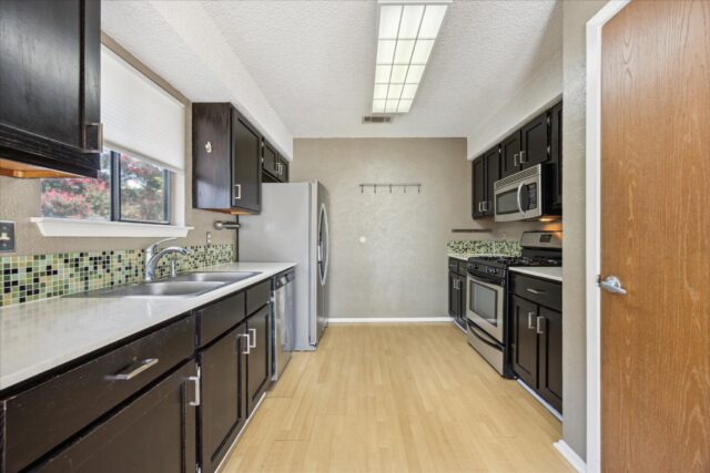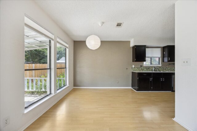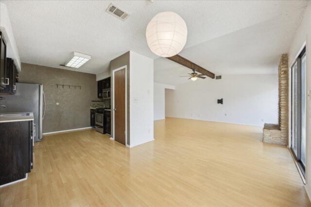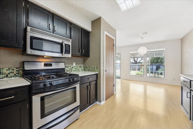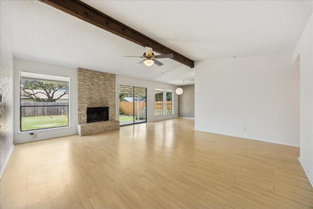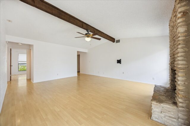 Quintessential South Austin ranch home sounded by local amenities. Spacious living/dining room features a stone fireplace, vaulted ceiling and abundant natural light. The kitchen, which opens to the great room, features shaker cabinets, quartz counters and a full compliment of stainless appliances. The primary bedroom easily accommodates a king bed and includes an ensuite bathroom with double vanity, two walk-in closets and full tub. Two other bedrooms offer ample space for kids, home office or hobbies. Laundry facilities are located in the attached two-car garage for easy access. Other features include fresh exterior paint, new rear patio cover and recently rebuilt backyard privacy fence. The house is two blocks to the entrance to the Westcreek Greenway which many use to connect to the adjacent Patton Elementary and Small Middle School campuses. The house is also less then 1 mile from the Shops at Arbor Trails (Whole Foods, Costco, Mandola’s…) and offer fast access to both Mopac, Ben White Blvd and Sunset Valley.